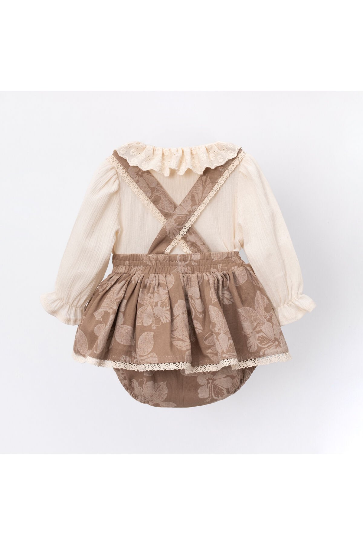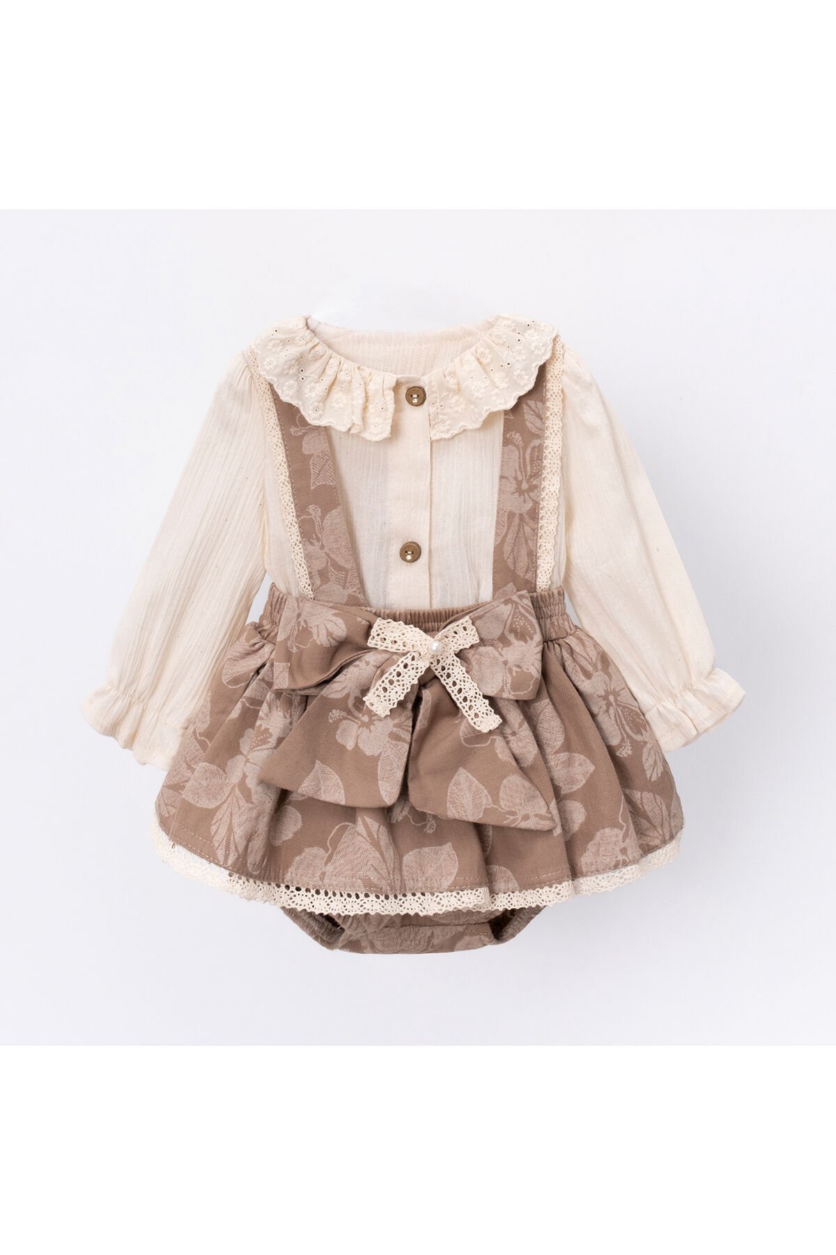 - Çiçek desenleriyle süslenmiş, bebeğinizin şıklığını ön plana çıkaran bir tasarım.; - Kısa boy kesimi ile rahat hareket etme özgürlüğü sunar ve sıcak havalarda ideal konfor sağlar.; - Regular kalıp sayesinde bebeğinizin vücuduna tam oturur ve gün boyu rahat etmesini sağlar.; - Dokuma kumaş tipi, dayanıklılığı ve yumuşak dokusuyla bebeğinizin cildine nazikçe dokunur.; - Bebek ve çocuk yaş grubuna uygun olarak tasarlanmıştır, miniklerin konforunu ön planda tutar.; hem şık hem de eğlenceli bir görünüm sunar.; - Bej rengi, kolay kombin yapabilme avantajı sağlar ve her ortama uyum sağlar.; - Normal bel kesimi ile gün boyu rahatlık sunarken, kalın askılı tasarımı ekstra destek sağlar.; - Dokuma materyali sayesinde uzun süreli kullanım için idealdir ve formunu korur.; - Bebe yaka detayı ile zarif bir görünüm kazandırırken, fırfır detayları hareketliliği arttırır.; - 2'li paket içeriği; hem bluz hem de şorttan oluşur, pratik kombin imkanı tanır.; - Cepsiz yapısıyla sade ve şık bir stil oluştururken, uzun kol boyu mevsim geçişlerinde ideal koruma sağlar.; - Orta kalınlıkta kumaşı mevsim geçişlerinde ideal konfor sunarken, astarsız yapısıyla ekstra rahatlık sağlar.; Bej rengi ile doğal tonların zarafetini yansıtır ve farklı renklerle kolayca eşleştirilebilir.; - Narin yıkama talimatına uygun şekilde bakım yapılması ürün ömrünü uzatır.