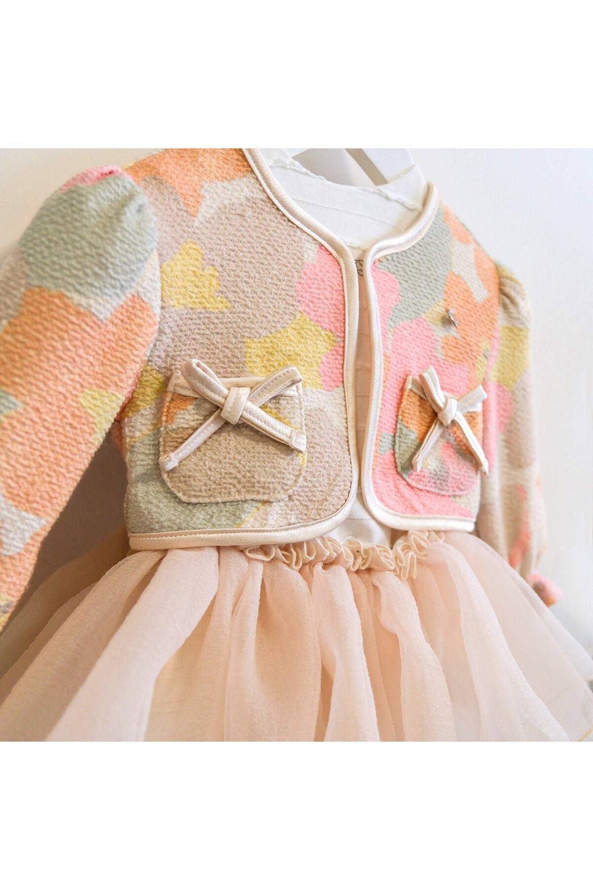 - Orta kalınlıkta kumaşı ile mevsim geçişlerinde ideal bir seçim sunar.; - Tül dokuma tipi, şık ve zarif bir görünüm kazandırırken hafifliğiyle konfor sağlar.; - Üç parça olarak tasarlanmış bu takım, hem gömlek hem bolero hem de etekten oluşur; her parçası ayrı ayrı da kullanılabilir veya kombinlenebilir.; - Makinede hassas yıkama imkanı sayesinde pratik bakım avantajı sunar.; - Tüm sezonlarda rahatlıkla tercih edebileceğiniz bu takım, yıl boyu gardırobunuzda yerini alır.; - Astarlı yapısıyla ekstra konfor ve dayanıklılık sağlar.; - Gömlek %100 pamuk içeriğiyle cildinize nefes aldırırken, bolero ve kısa etek ise farklı materyallerle zenginleştirilmiştir.; - Dokuma kumaş tipi, dayanıklılığı artırarak uzun süreli kullanım vaat eder.; - Regular kalıp seçeneğiyle vücut hatlarınıza uyum sağlayacak şekilde tasarlanmıştır.; - Standart kol boyu ve uzun kol detayları ile mevsimsel değişikliklere karşı esneklik gösterir.; - Alt-üst takımı olarak bluz ve eteği bir arada bulunduran bu set, trend bir stil oluşturmanız için idealdir.
