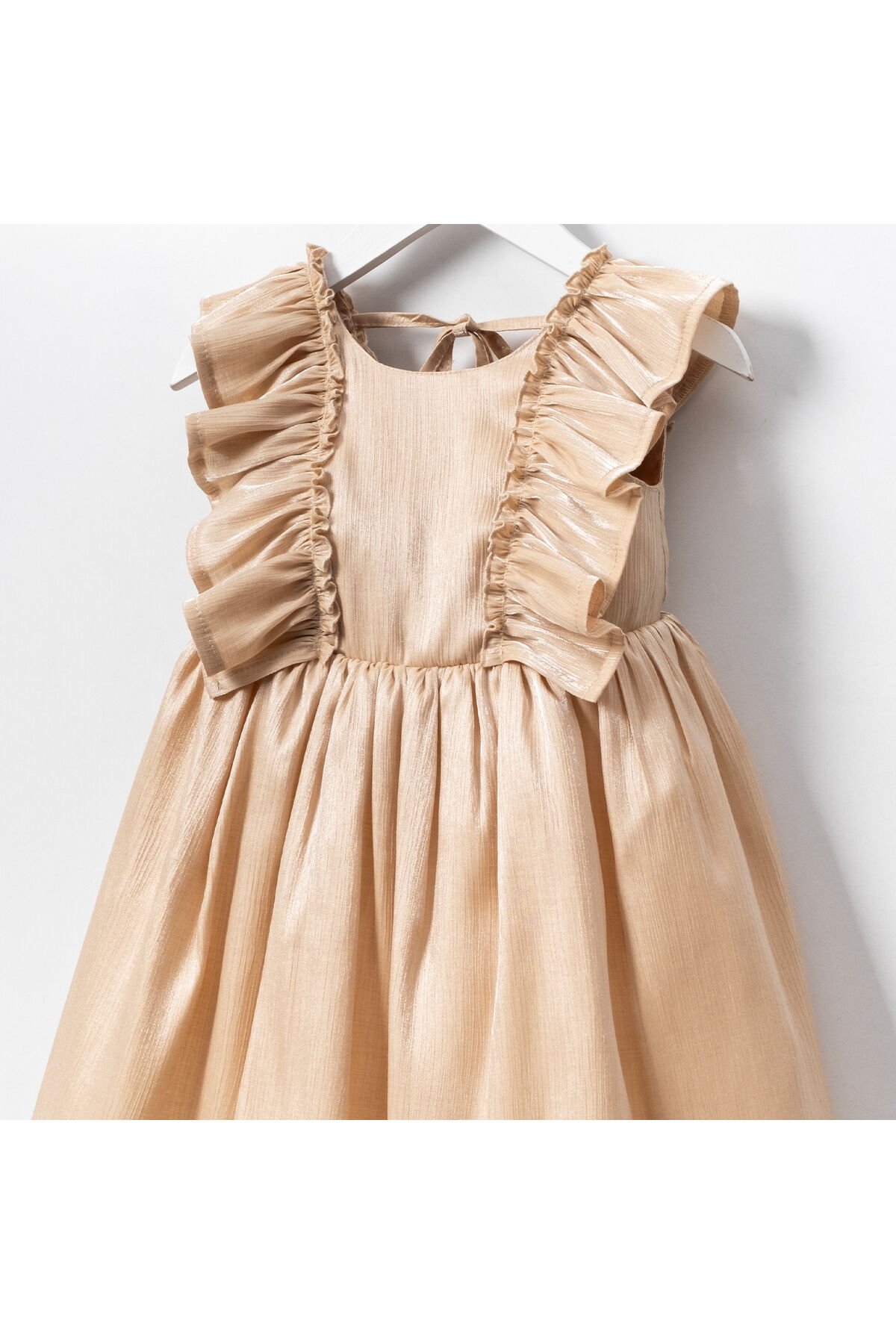 Dokuma kumaş yapısı ile konforlu ve dayanıklı bir kullanım sunar; Type 1 yıkama talimatına uygun şekilde kolayca temizlenebilir, böylece elbisenin uzun ömürlü olması sağlanır; Standart boyu ile farklı vücut tiplerine uyum sağlar ve rahat bir giyim deneyimi sunar; Fırfırlı detayları ile şık ve neşeli bir görünüm kazandırır; Çocuklar için özel olarak tasarlanmış olup, onların hareket özgürlüğünü kısıtlamaz; Regular kalıp sayesinde vücuda tam oturur ve rahat bir kullanım imkanı tanır; Düz tasarımıyla sade ve zamansız bir stil oluşturur; her tür aksesuarla kolayca kombinlenebilir;