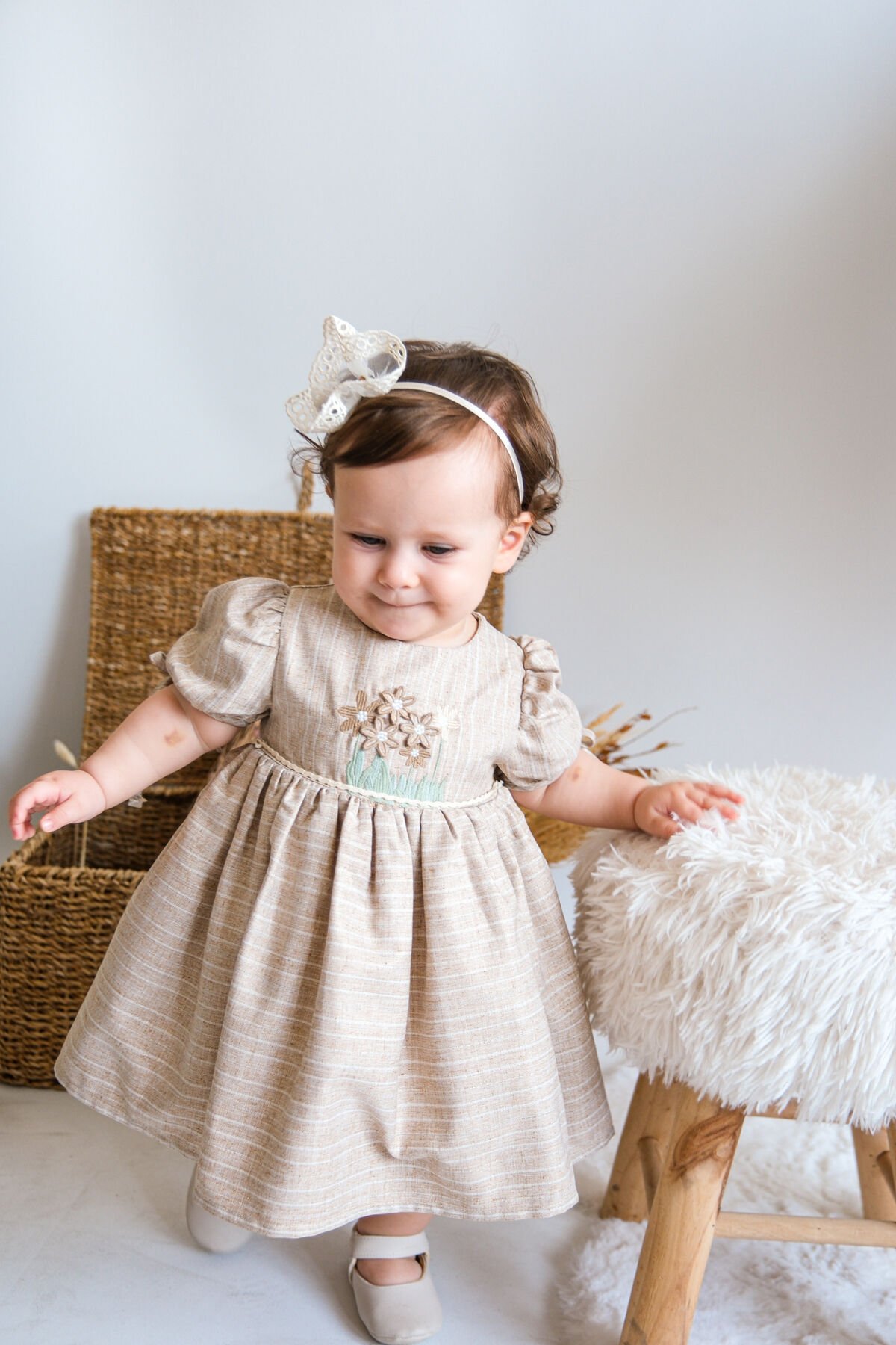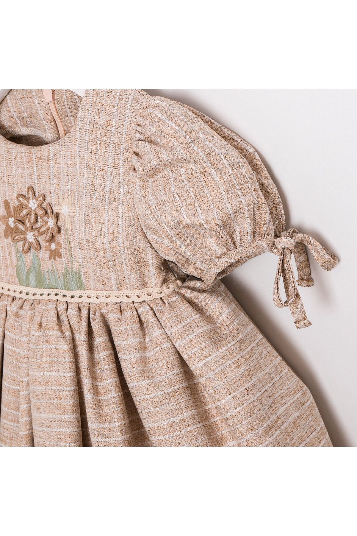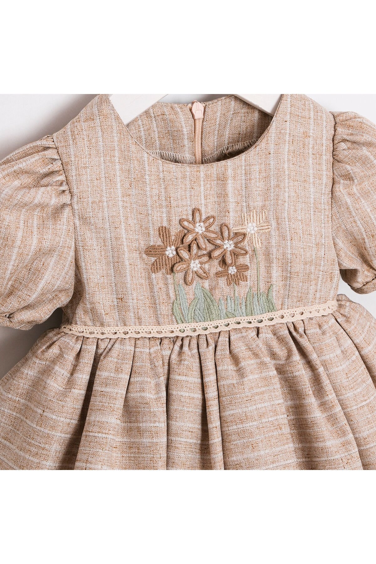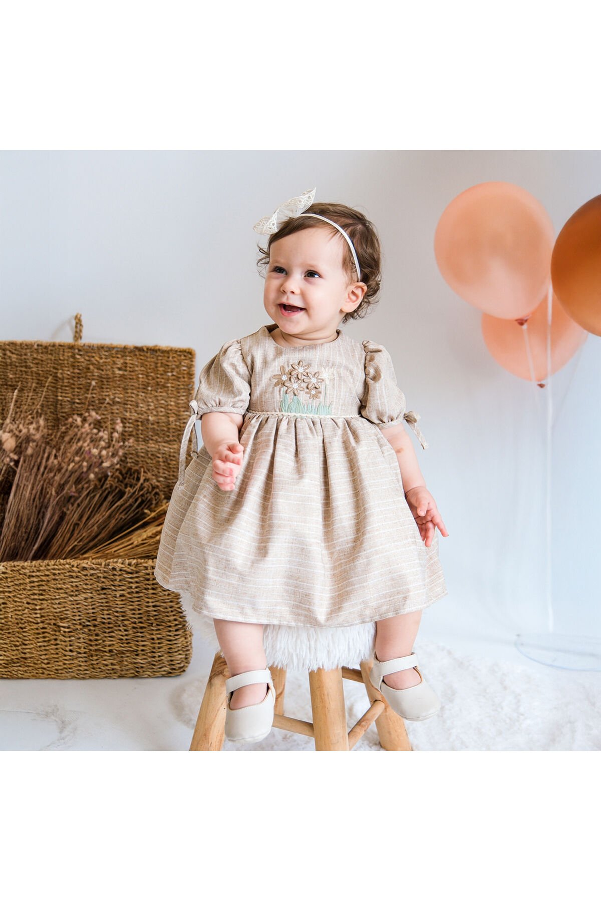 - %100 pamuk materyali ile bebeğinizin cildine nazik dokunuşlar sunar.; - Zarif tasarımıyla her sezon tercih edebileceğiniz şıklığı yakalar.; - Astarlı yapısı sayesinde rahatlıkla giydirip çıkarabilirsiniz.; - Kloş siluetiyle hareket özgürlüğü sağlar ve gün boyu konforlu bir kullanım sunar.; - Organik malzemeler kullanarak sürdürülebilir moda anlayışını destekler.; - Orta kalınlıkta kumaşı mevsim geçişlerinde ideal koruma sağlar.; - Fermuarlı kapama şekli pratik kullanım imkanı tanırken, kolayca giyilip çıkartılmasını mümkün kılar.; - Nakış detayları ile göz alıcı bir görünüm kazandırırken aynı zamanda dayanıklılık sunar.; - Dokuma kumaşı sayesinde uzun süreli kullanım vaat ederken formunu korur.; - Türkiye'de üretilmiş olup yerel üretim avantajlarından faydalanmanızı sağlar.; -Regular kalıp ile vücuda tam oturan ancak sıkıştırmayan yapıya sahiptir.; - Standart boy uzunluğuyla farklı bedenlere uyum gösterir.; - Bebek & çocuk yaş grubuna özel olarak tasarlanmıştır; minik prensesler için idealdir.; - Kısa kol boyu yaz ayları için serin tutarken balon kol tipi modern bir hava katmaktadır.; - Trend ortamlarda dahi stil sahibi görünmenizi sağlayacak düz deseniyle dikkat çeker.; - Sıfır yaka tasarımı hem rahatlık hem de zarif bir duruş sunarken kombin seçeneklerini arttırır.;