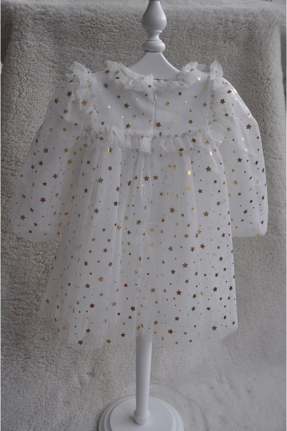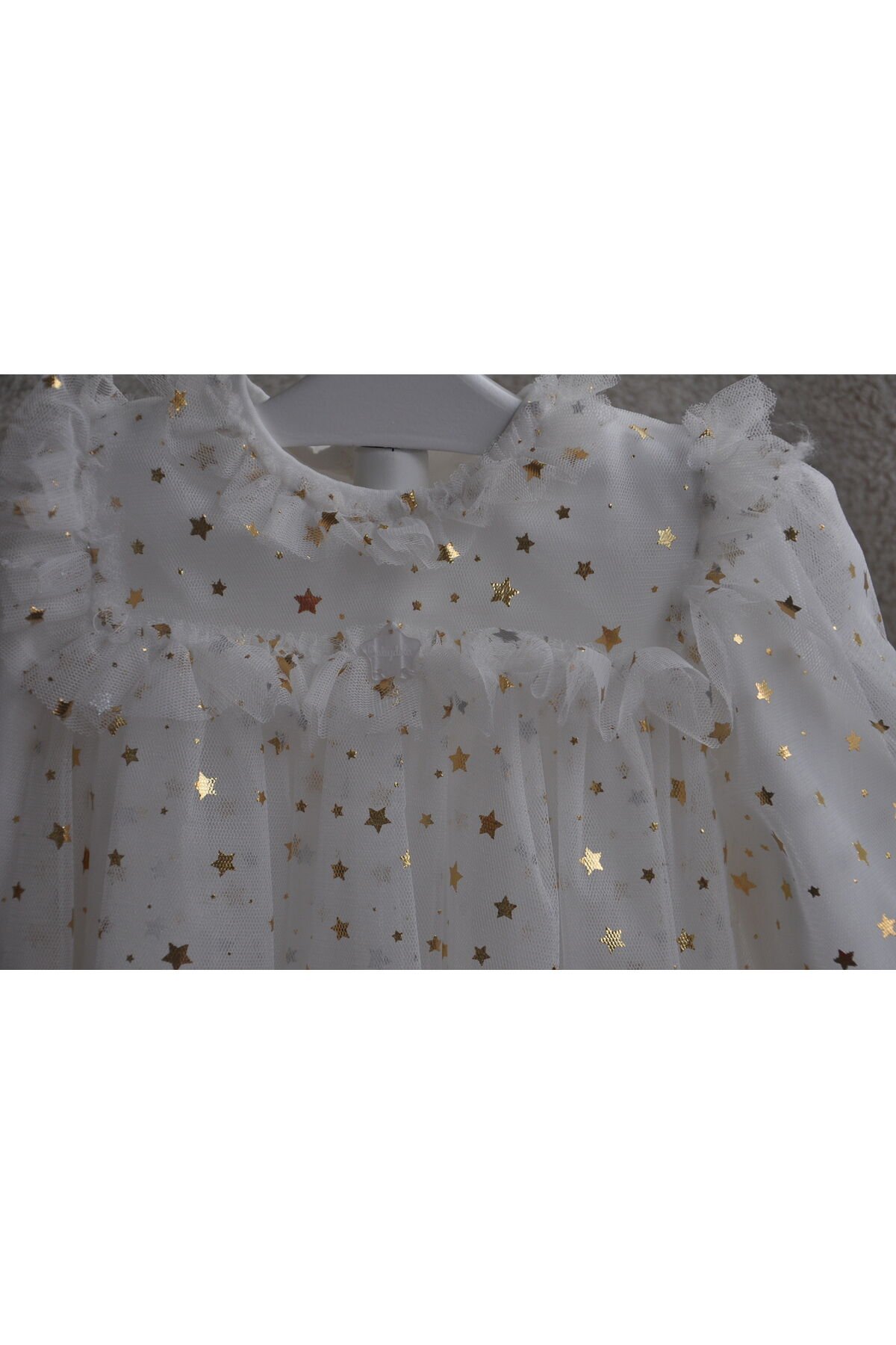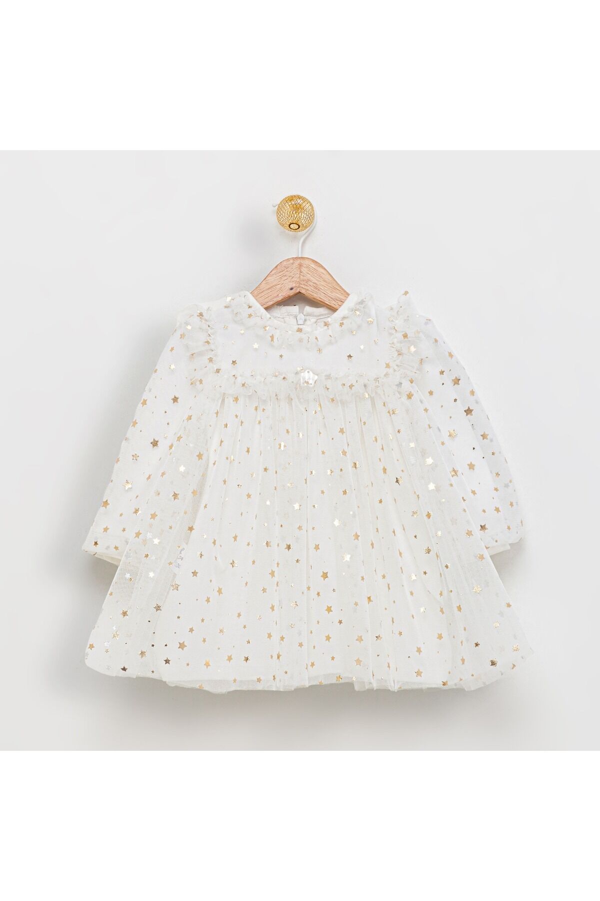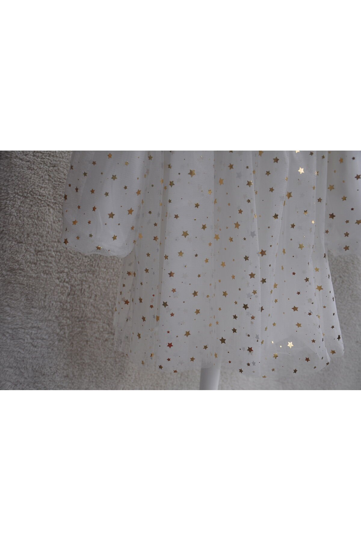 - Tek parça olarak sunulan bu elbise, pratik kullanım için cepsiz tasarlanmıştır.; - Fermuarlı kapama şekli sayesinde kolayca giyilip çıkarılabilir ve rahat bir kullanım sunar.; - Orta kalınlıkta kumaşı ile mevsim geçişlerinde ideal bir tercih olup, konforlu bir deneyim sağlar.; - Astarlı yapısı ile rahatlık ve şıklığı bir arada sunarken, parıltılı detaylarla göz alıcı bir görünüm kazandırır.; - Party koleksiyonuna ait bu elbise, özel günlerde ve kutlamalarda dikkat çekici bir stil oluşturmanızı sağlar.; - Kloş silueti ile feminen ve zarif bir duruş sergilerken, dijital baskı teknolojisi ile canlı ve net desenler elde edilir.; - Tül dokuma tipi sayesinde hafif ve havadar bir yapıya sahip olup, hareket özgürlüğü tanır.; - Kemersiz tasarımı ile modern ve minimalist bir görünüm sunarken, iç astarı pamuk materyaliyle cildinize nazikçe dokunur.; - Makinede hassas yıkama talimatına uygun şekilde temizlenmesi kolaydır; böylece elbisenizin ilk günkü gibi kalmasına yardımcı olur.; her yaş grubuna hitap eden geniş bir kullanım yelpazesi sunar.; - Tüm sezonlarda tercih edilebilen bu ürün, gardırobunuzdaki çok yönlülüğü arttırır.; - Türkiye menşeli olmasıyla yerli üretim kalitesini ve işçiliğini yansıtırken kutusuz olarak sunulmasıyla da çevre dostu bir seçenektir.; - Standart boyu ile farklı vücut tiplerine uyum sağlayarak her bedene uygunluk gösterir.; - Uzun kol tipiyle mevsimsel geçişlerde ideal koruma sağlarken, sıfır yaka tasarımı zarif bir boyun çizgisi oluşturur.; - Desenli yapısıyla göz alıcı detaylar barındırırken, uzun kol boyu sayesinde kollarınızın tamamını sararak şık bir görünüm kazandırır.;