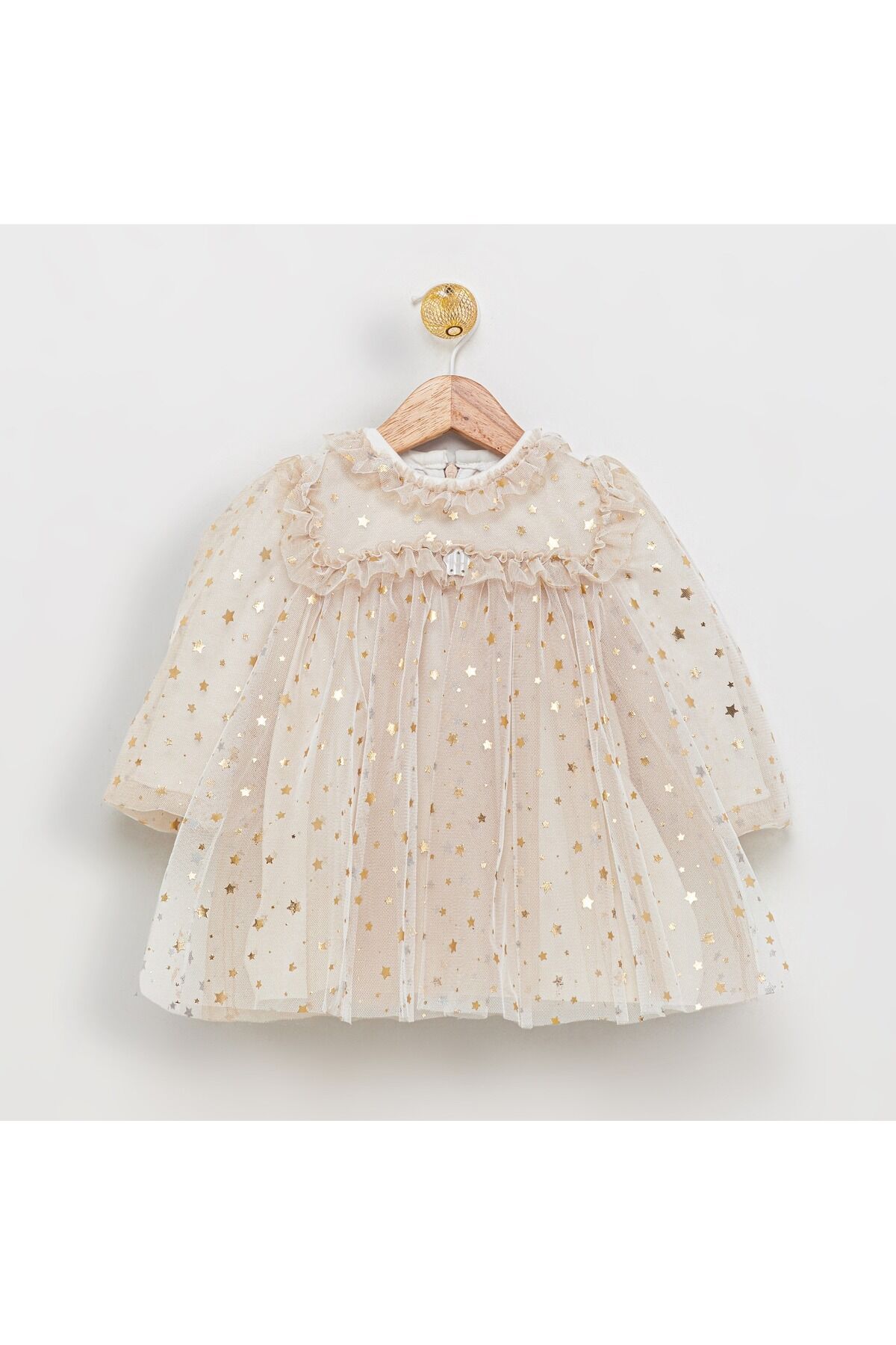 - Tek parça olarak sunulan bu elbise, pratik kullanım için cepsiz tasarlanmıştır.; - Fermuarlı kapama şekli sayesinde kolayca giyilip çıkarılabilir ve rahat bir kullanım sunar.; - Orta kalınlıkta kumaşı ile mevsim geçişlerinde ideal bir tercih olup, konforlu bir deneyim sağlar.; - Astarlı yapısı ile rahatlık ve şıklığı bir arada sunarken, ürün detayları da göz alıcıdır.; - Party koleksiyonuna ait olan bu elbise, moda severlerin beğenisine hitap eder.; - Fashion Forward persona ile modern ve şık bir görünüm kazandırırken, kloş silueti hareket özgürlüğü sağlar.; - Varak baskı/nakış tekniği ile zenginleştirilmiş deseniyle dikkat çekici detaylar ekler.; - Tül dokuma tipi sayesinde hafif ve zarif bir hava katarken, pamuk iç astarı cildin nefes almasını sağlar.; - Makinede hassas yıkama talimatına uygun şekilde temizlenmesi önerilir; böylece elbisenizin uzun ömürlü olması sağlanır.; tüm sezonlarda tercih edilebilecek çok yönlülükte tasarlanmıştır.; - Türkiye menşeli olmasıyla yerli üretim kalitesini yansıtırken kutusuz olarak sunulmasıyla da kolaylık sağlar.; - Standart boyu ile farklı vücut tiplerine uyum sağlayacak şekilde tasarlanmıştır.; - Kloş kalıbı sayesinde feminen hatları ön plana çıkartırken, tül kumaşı hafifliğiyle konforlu bir kullanım sunar.; - Uzun kol tipiyle mevsim koşullarına uygun koruma ve şıklık sağlar.; - Sıfır yaka tasarımının yanında baskılı deseniyle göz alıcı detaylar ekler.; - Uzun kol boyu soğuk havalarda ekstra koruma sağlarken, parti ortamları için idealdir.;