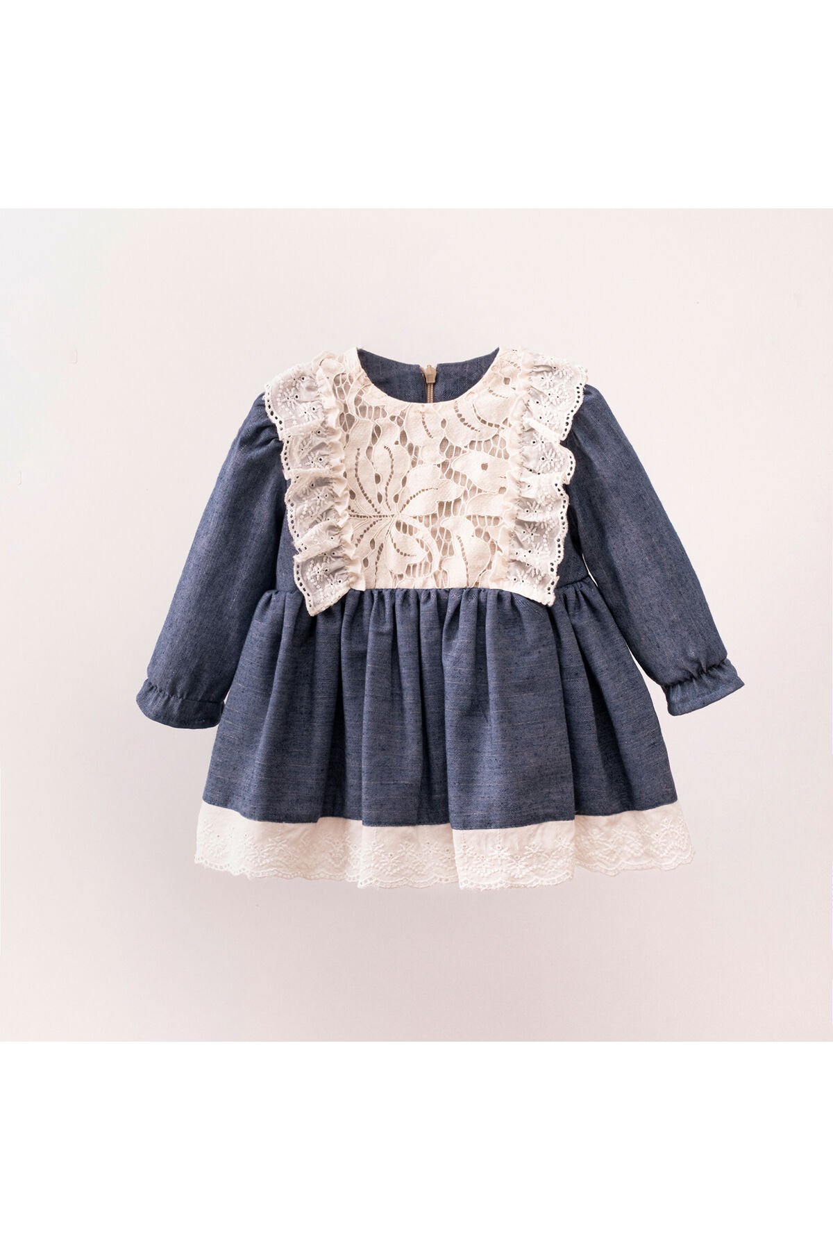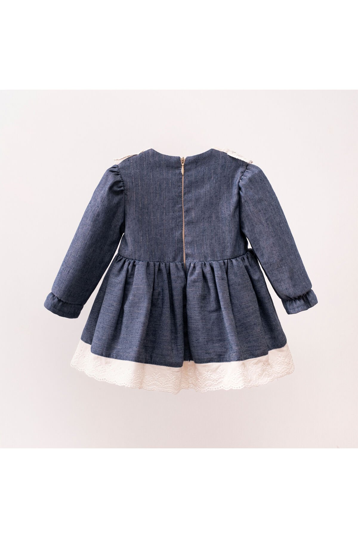 Orta kalınlıkta dokuma kumaşı ile mevsim geçişlerinde ve serin havalarda bebeğinizin konforunu sağlar; Uzun kollu tasarımı, bebeğinizin kollarını sıcak tutarken şık bir görünüm sunar; Bebek ve çocuklar için özel olarak tasarlanmış olup, hareket özgürlüğünü kısıtlamayan rahat bir kullanım vaat eder; Sade ve düz deseniyle zamansız bir şıklık yaratırken, her türlü aksesuarla kolayca kombinlenebilir; Gündüzden geceye her ortama uyum sağlayabilen çok yönlülükte bir elbise seçeneği sunar; Bebe yaka detayı ile zarif bir boyun çizgisi oluştururken, fermuarlı kapama şekli pratik kullanım imkanı tanır; Regular kalıp sayesinde bebeğinizin vücut hatlarına uyum sağlayarak rahat bir oturuş sunar; Standart boy uzunluğu ile bebeklerinize tam oturan ideal bir elbise alternatifi oluşturur; Fisto detayları ile elbiseye modern ve ş;