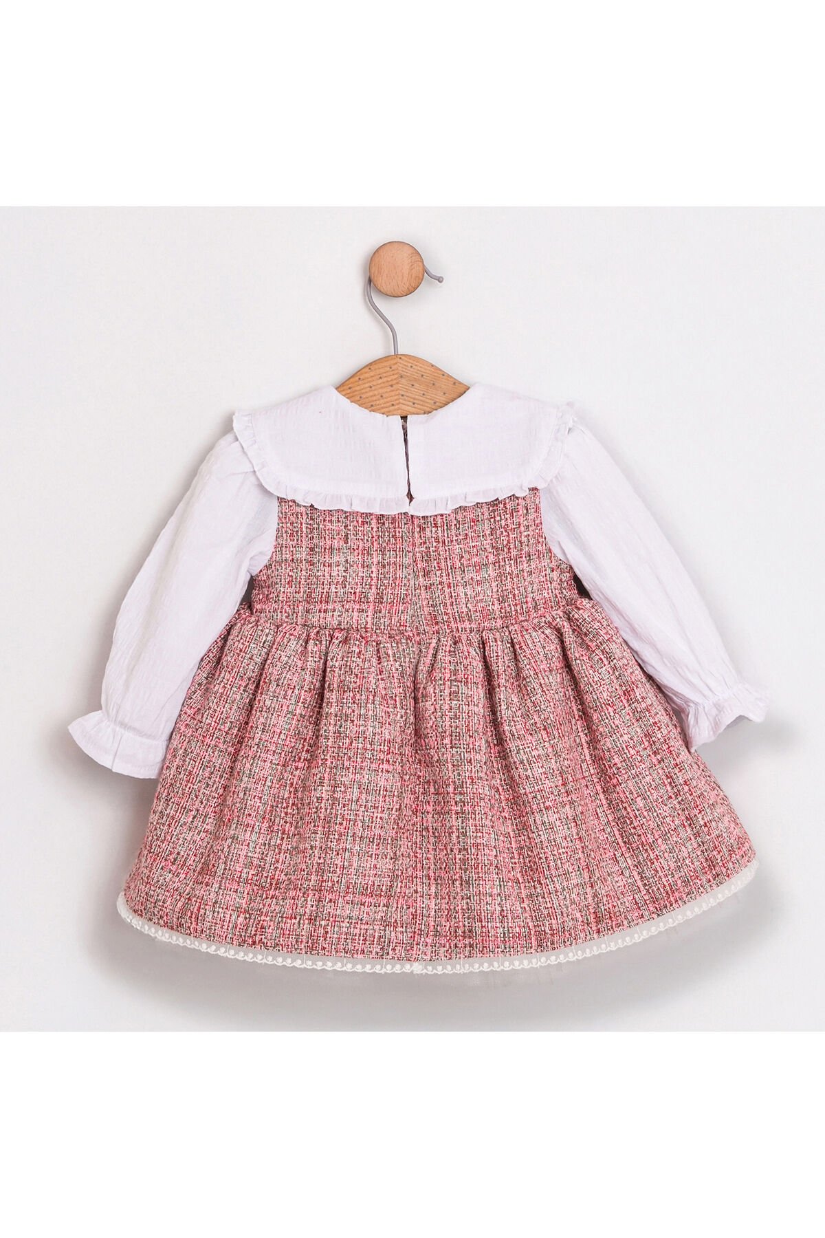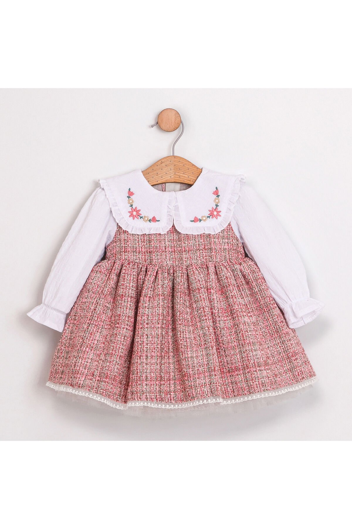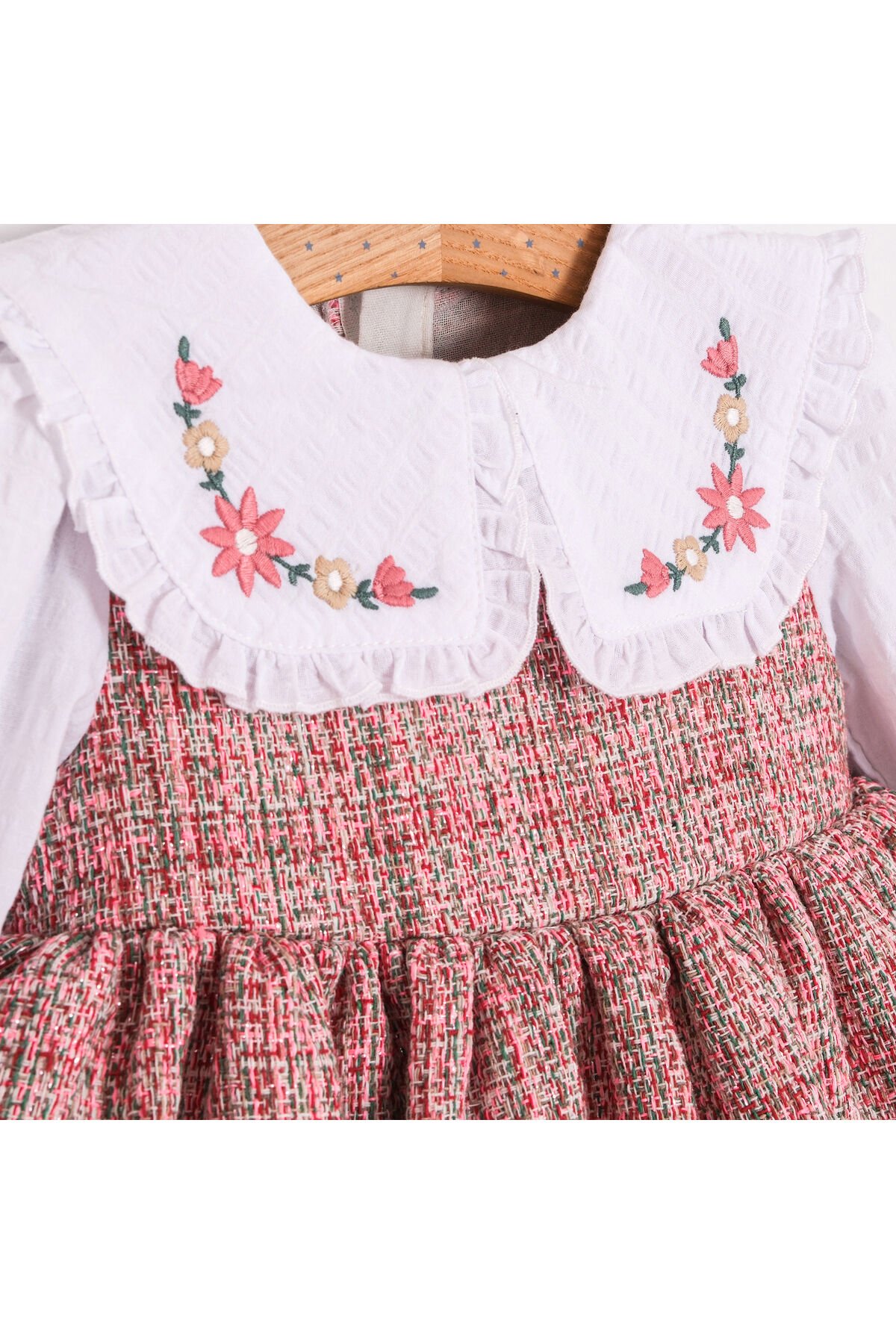 Yakası Nakışlı Tüvit Kız Bebek Elbise